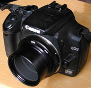 At the end of 2005 I bought a Canon 350D Digital SLR, partly for astro imaging and also for 'normal' use. Once the warranty had expired, I had it modified to remove the existing infrared filter and replace it with one which passed the important Hydrogen-alpha light. Although this can be a DIY project, I played safe and had the experts do it! In this case a local company Astronomiser who did an excellent job at a reasonable price. |