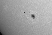 Cloud prevailed, but a brief clear patch on 6th June gave me an opportunity to image both the entire Sun and also have a go at white light granulation. Sun Acuter 40, Altair 178M camera, 20 from 200 frames, Autostakkert, Registax and Photoshop. |
