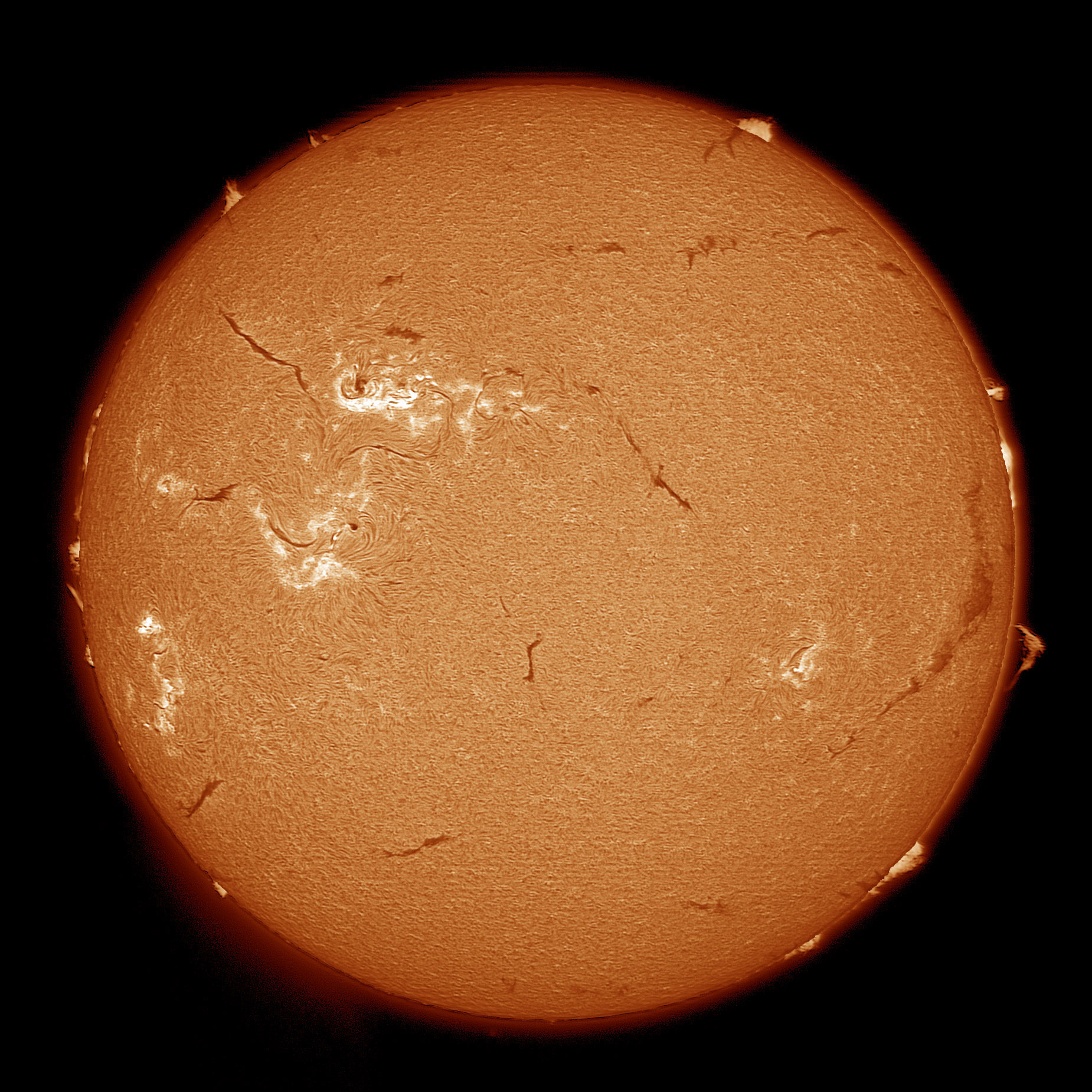 Several attractive prominences and some active areas with small spots on 2nd September 2012. Artemis 285 with Solarscope 50 |
