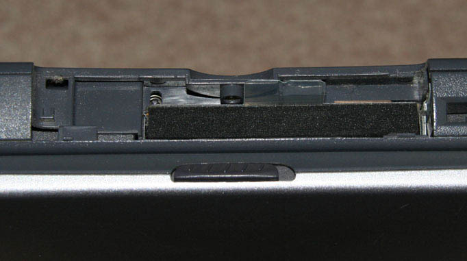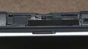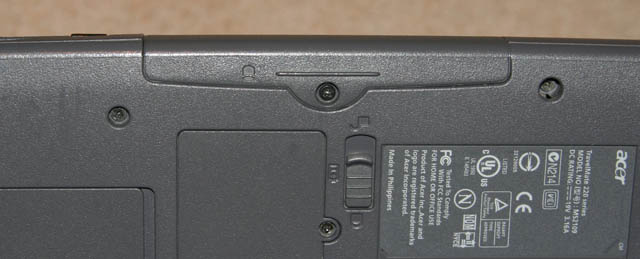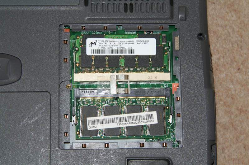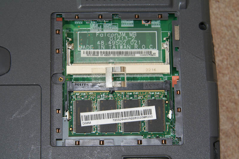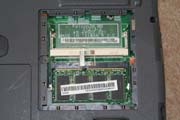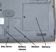 I ordered a 512 MB memory card from Crucial in the UK. (At the same time I also ordered a 1GB card for my desktop). Crucial have an excellent system for choosing the correct memory, which duly arrived a couple of days later and installed with no problems. Highly recommended! This is the rear of the laptop showing the various access hatches. |
