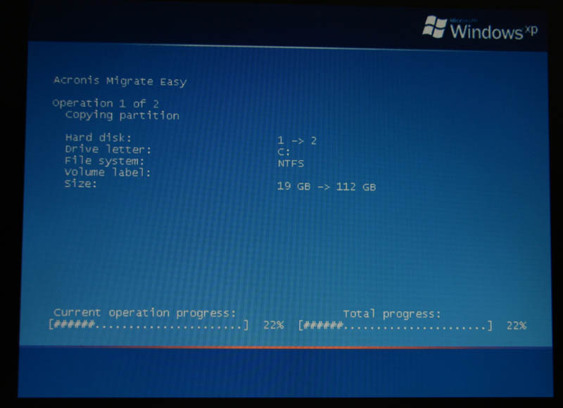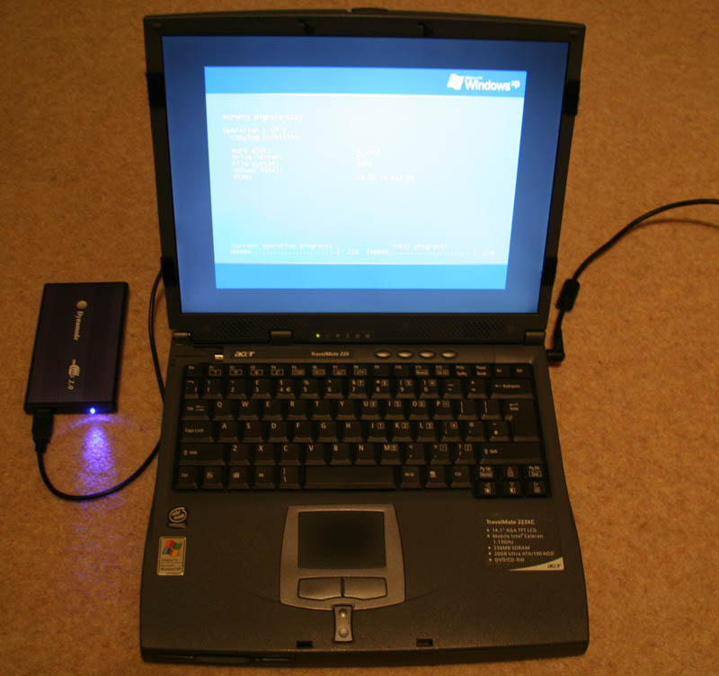 A progress screen shot. The whole transfer took around four hours - the Acer only had USB 1.1, and although I had a USB2 PCMCIA card, I didn't want to trust it for such an important task |