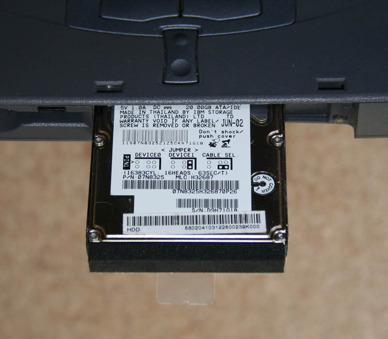 But the hard drive was more problematical. On examining the laptop, it appeared that the hard drive lived in a slot at the front of the machine, with a plastic tag to extract it. But a firm pull on the tag had no effect.