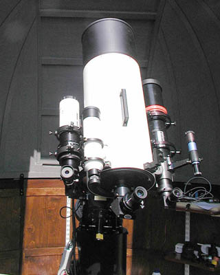 With my Stellarvue AT1010 set on one side of the main tube in a GuideStar mount, my Helios1 Solar Scope in tube rings on the other side, and the main tube fixed with a dovetail clamp so that I can easily change between the TMB refractor and the Mirage, my line up is complete. |